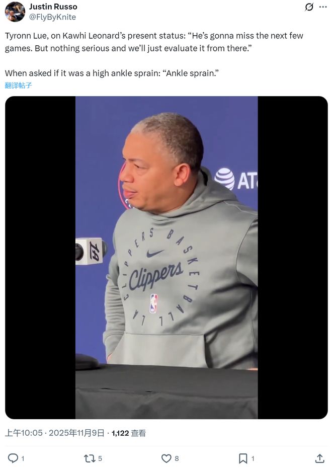 北京时间11月9日,NBA常规赛快船队主场迎战太阳队。快船队主帅泰伦卢在赛前新闻发布会上表示,伦纳德扭伤了脚踝,目前还没有确定的回归时间表,他不会参加接下来的比赛。一名记者问科怀他的扭伤有多严重,泰伦·卢说没有那么严重。快船队的战绩一开始就很糟糕,现在更糟糕了。 11月4日,在快船队与热火队的比赛中,伦纳德扭伤了脚踝。全场比赛他出战37分钟,21投10中得到27分4篮板4助攻4抢断2盖帽。伦纳德连续缺席两场比赛,11月5日对阵雷霆,11月7日对阵太阳。今天快船和太阳再次相遇,但伦纳德还有轮空牌。截至今天的比赛,快船队以3胜5负的成绩排在西部第11位。快船队后面是国王队和J队阿兹3胜6负。本赛季伦纳德出战6场比赛,场均出场33.5分钟,得到24.3分5.7篮板3.5助攻2.5抢断0.7盖帽1.8失误。他的三分球命中率分别为50.5%、40%和96.3%。 11月1日对阵鹈鹕队的比赛中,伦纳德吹响了压哨球。快船队本赛季赢了三场比赛:对阵开拓者队、对阵太阳队和对阵鹈鹕队。他们的对手并不强。显然,快船队现在的阵容结构很难让球迷接受。别忘了,伦纳德的阴阳合同案还在调查中。目前,只有五支NBA球队从未进入过总决赛。快船队成立 55 年后排名第一。黄蜂队已经进入第37个年头,排名第二。森林狼队已经进入第36个年头,目前排名第三。灰熊队在成立 30 周年之际排名第四。鹈鹕队已经成立 23 年,目前排名第五。看着以快船目前的状态,未来这个纪录很可能还会继续被打破。对于今天快船队的糟糕表现,泰伦卢这样说道:“从教练组到所有球员,每个人都必须提高自己的表现。每个人都应该照照镜子,问问自己如何才能变得更好。但没有必要惊慌,我相信我们都会团结起来!一位网友说:“你应该是照镜子的人!”快船队的防守效率上赛季排名联盟第三,但本赛季已经跌至联盟第26位。卢在当天的新闻发布会上批评了哈登,没有提及他的名字,他说:“我们必须提高我们的比赛水平和防守表现。”我认为祖巴茨的防守很好。防守上最大的问题就是我们要提高防守、防守和内线之间的沟通。”从2019年夏天到现在,快船队疯狂加薪每个休赛期,球迷都将他们称为“休赛期冠军”。但一旦赛季开始,快船队总是让大家失望。快船今年夏天引进了约翰·科林斯、洛佩兹、保罗和比尔等明星球员,但自赛季开始以来他们还没有在客场取得胜利。伦纳德的三年合同价值1.5亿美元,将于2027年夏天到期。本赛季他的年薪为4879万美元,未来两年年薪将超过5000万美元。自2019年加盟快船以来,伦纳德只出场了56%的比赛。伦纳德身价2.4亿美元,但他总共只赢得了三个系列赛。毕竟,常规赛才刚刚开始。你认为快船队本赛季还能打出好成绩吗?